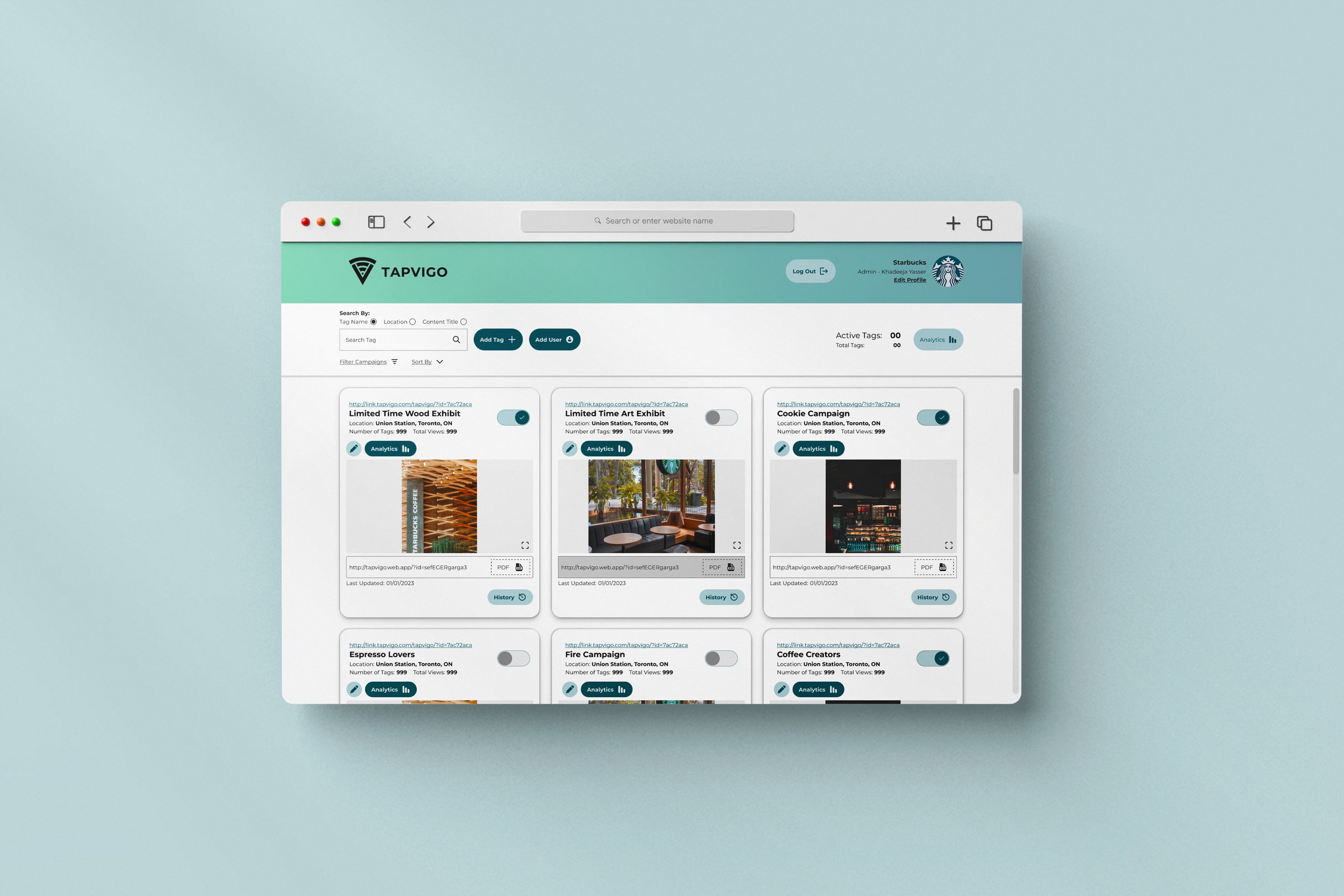 Architected the wireframes for the entire Tapvigo platform including client and admin portals from scratch for virtual tag management.